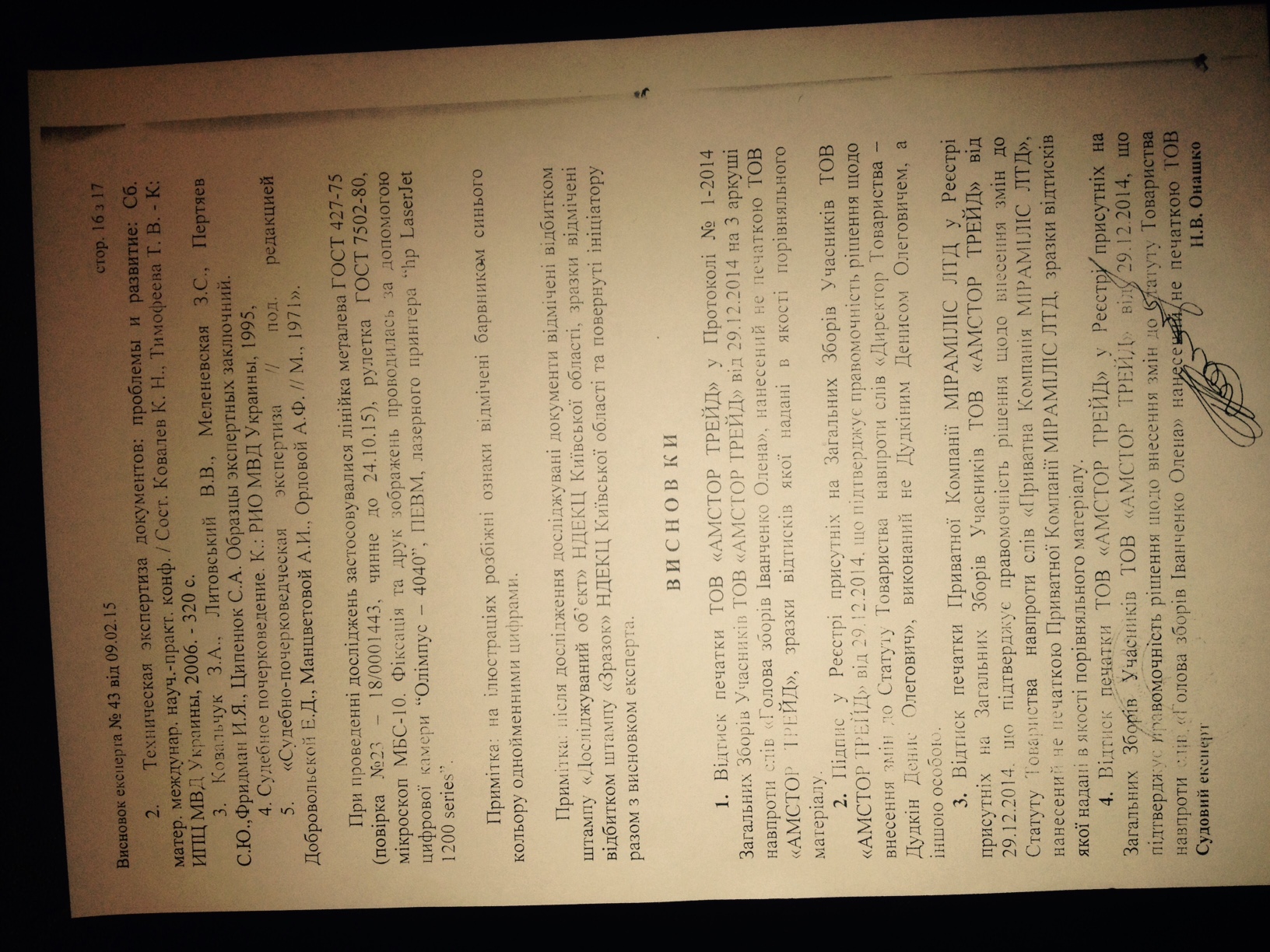 Заключение эксперта приобщено к материалам уголовного производства о подделке документов и незаконном завладении корпоративными правами ООО “Амстор Трейд”.