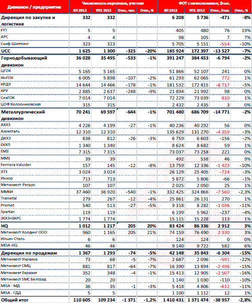 Средний годовой фонд оплаты труда (с начислениями) на одного работающего в группе “Метинвест” в 2012 году составит 12 555 долларов. Об этом говорится в уточненном по итогам первых пяти месяцев текущего года бизнес-плане группы “Метинвест” на 2012 год, который имеется в распоряжении “УкрРудПрома”.