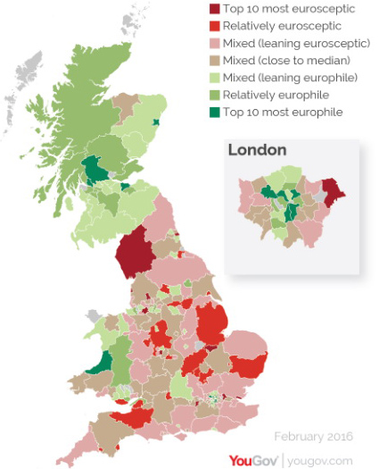 Евроскептические настроения больше распространены в Англии, тогда как в Северной Ирландии и особенно в Шотландии преобладают еврооптимисты.